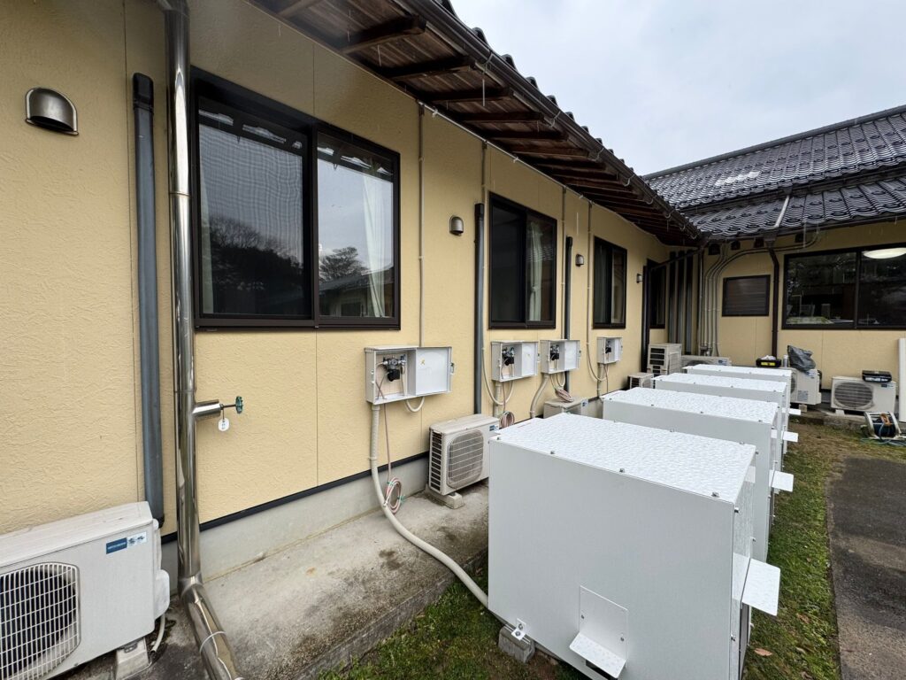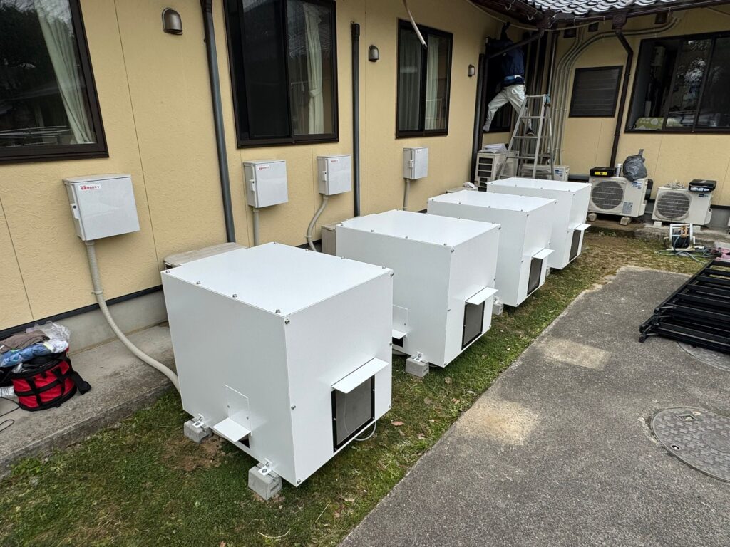 今回の導入は、1つの建物内に併設された2つの福祉施設において、災害時や停電時にも安定した電力供給を確保し、利用者様の安全と安心を最優先に考えた施設運営の一環として実施されました。高齢者や要介護者の方が生活する施設では、停電によって命に関わる問題に直結しかねないため、非常用電源の確保は非常に重要です。